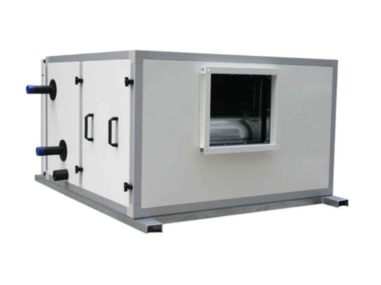 柜式空调机组由外挂式板式初效过滤(多层铝网、尼龙网或无纺布)表冷段和风机段组成。机组进风口处可留法兰以便用户连接管道,也可配风帽,但机组本身不带风量调节阀。